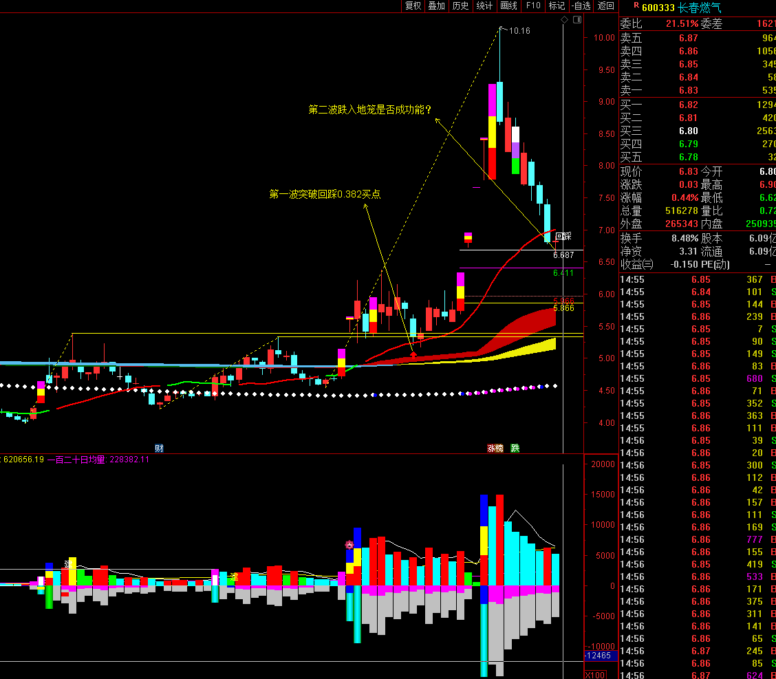 技能解析:放巨量跳空打破前期两个上涨浪极点,创一年收盘价新高,回踩0.382缺口2分钱未回补,强势特征显着,一个完美的好标的呈现