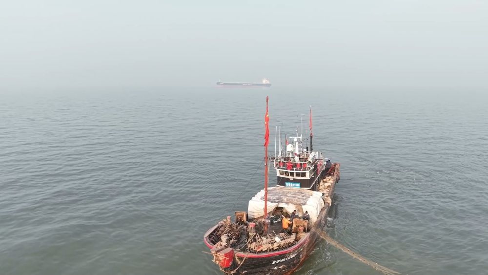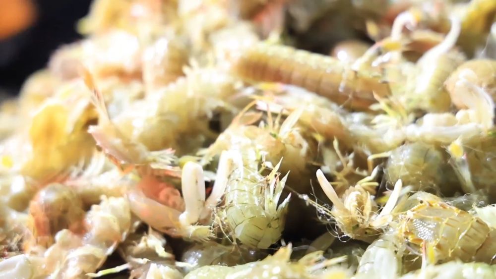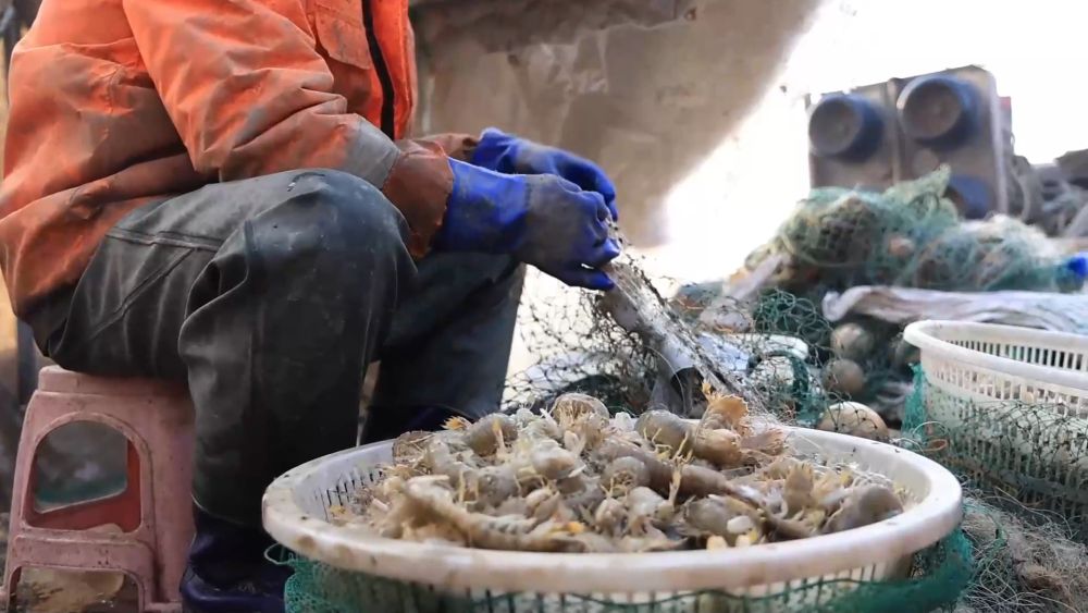 在无棣县埕口镇,渔民清晨便驾船出海。跟着渔网收起,一只只活蹦乱跳的琵琶虾跃上甲板。渔民随即进行分拣、清洗和装筐。