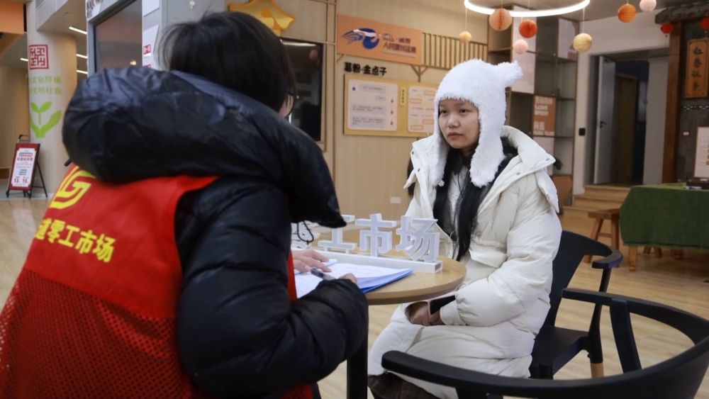 在杭州市余杭区仓前大街零工商场,负责人曹玉华正在对过往求职者进行工作回访。24岁的唐玉婷此前经过零工商场,从事过手艺串珠师、售票员、服务员等多个零工岗位,也参加过各类技术训练。