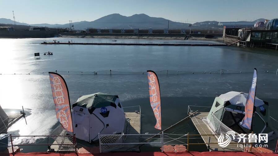 冰钓基地四面环山,昼夜温差大水面易结冰,但现有冰层无法直接支撑帐子。为此,基地在水面上搭建了钢构渠道,在保证安全的前提下,最大极限复原冰钓的最佳体会感。