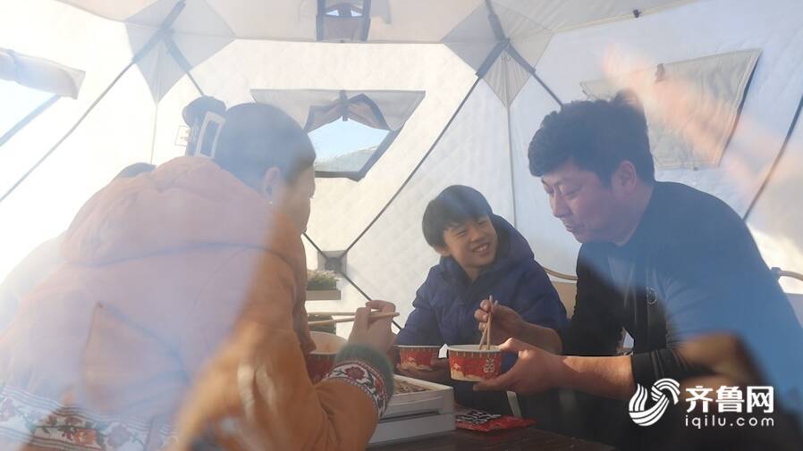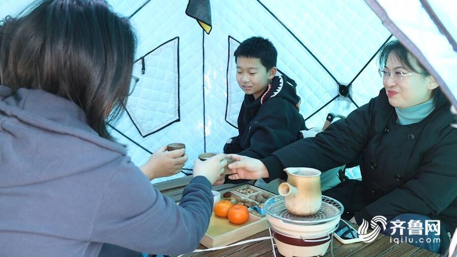 走进威海忘忧鱼休闲休假区冰钓基地,市民和游客们在暖意融融的帐子里沉溺式体会冰上垂钓的趣味。空闲之余,与老友围炉煮茶,品味热腾腾的烤鱼,感受着“冰火两重天”的异样魅力。